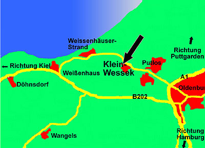 | → | erste Ausfahrt im Kreisel Richtung Weisenhäuser Strand |